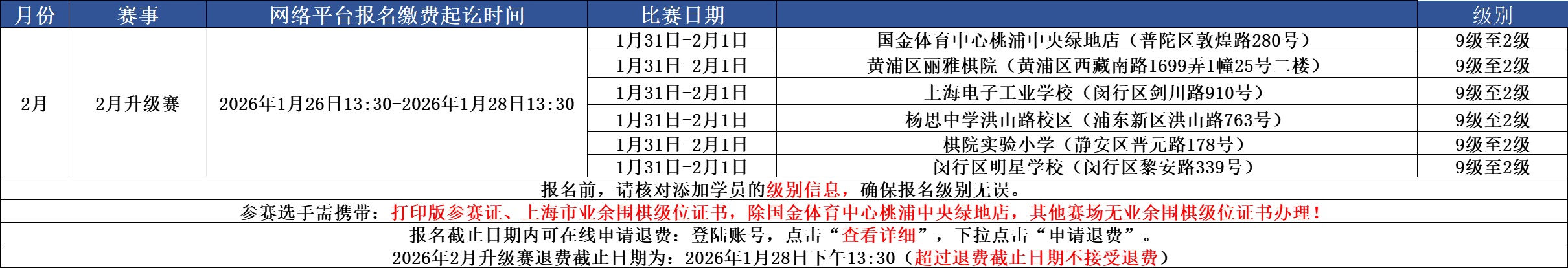 2026年2月上海市业余围棋升级赛赛事报名公告