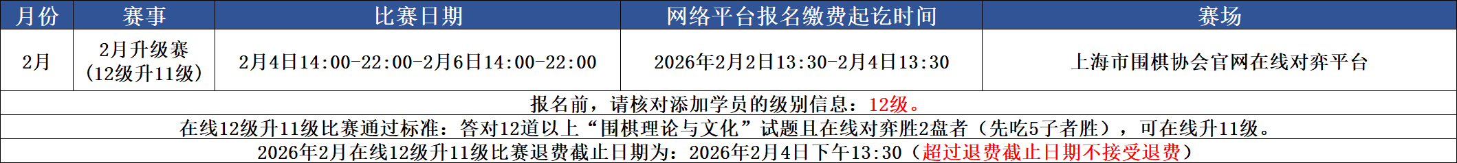 2026年2月上海市业余围棋在线11级升10级赛事报名公告