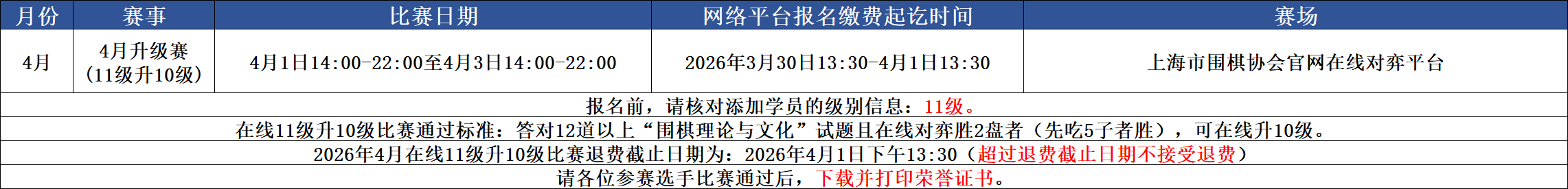 “扑扑鲸杯”2026年4月上海市业余围棋在线11级升10级赛事报名公告