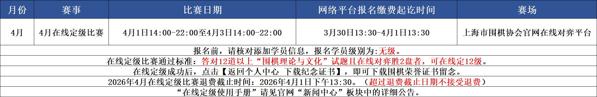 “扑扑鲸杯”2026年4月上海市业余围棋在线定级赛赛事报名公告