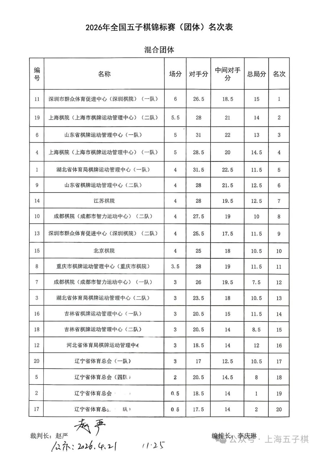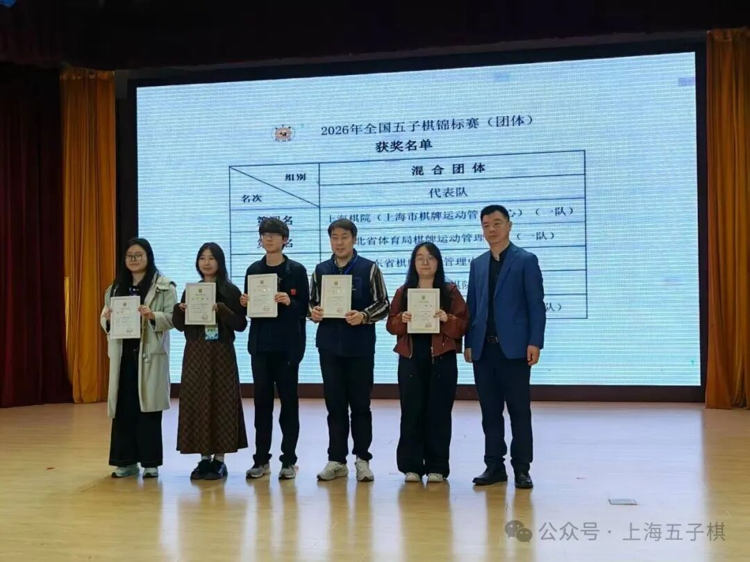 陌上花开缓缓归,珠璧合,少年游。4月21日上午,国家体育总局棋牌运动管理中心主办、大连市五子棋协会承办的2026年全国五子棋锦标赛(团体)在辽宁省大连市圆满落幕,赵云、吴镝、张欣怡组成的上海五子棋二队荣获本届团体赛混合团体亚军,黄立勤、江齐文、沈兰心组成的上海五子棋一队获得混合团体第四名。