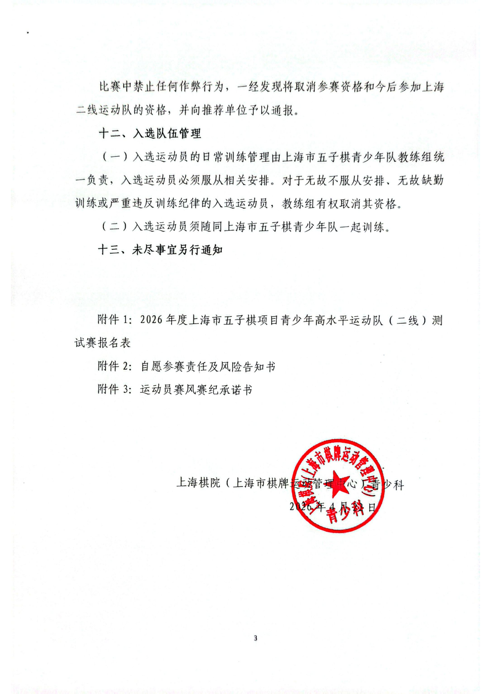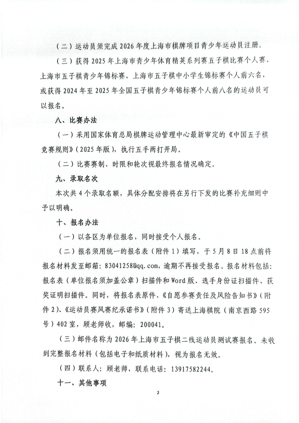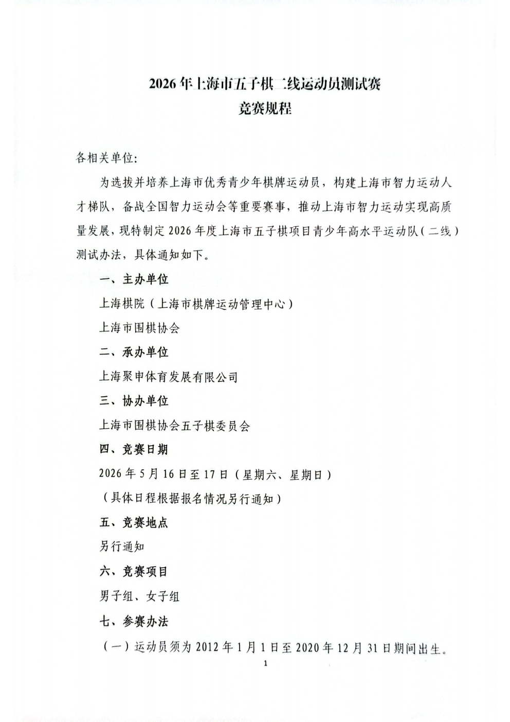 2026年上海市五子棋二线运动员测试赛竞赛规程